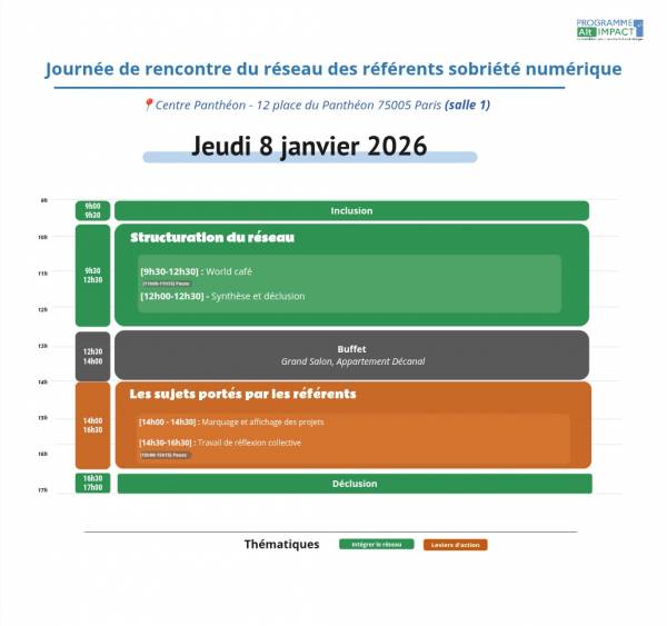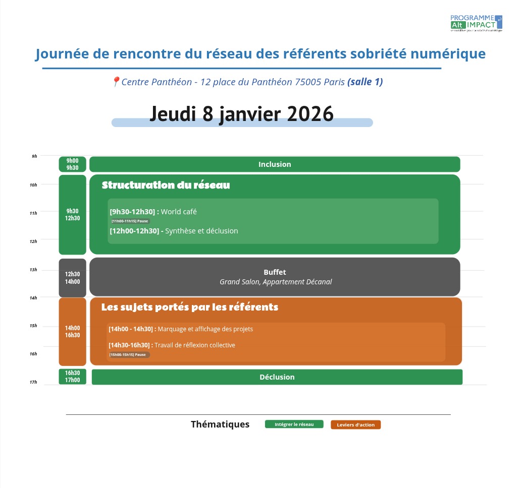 Après avoir initié le réseau en deux temps avec l'accompagnement d'Alt-Impact, les référents sobriété numérique de l'ESR, issus des deux promotions, initient leurs premieres assises le 8 janvier prochain sur le site de Sorbonne Université.
